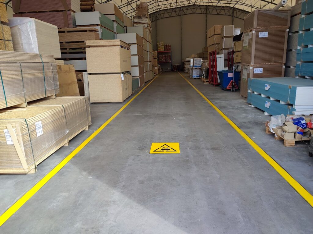 Lisäksi merkinnät auttavat työpisteitä ja käytäviä pysymään organisoituina sekä puhtaina turhista tavaroista ja roskista. Selkeästi merkitty tuotanto- tai varastotila on myös visuaalisesti näyttävä, turvallinen ja on loistava yrityksen käyntikortti vierailijoille.
