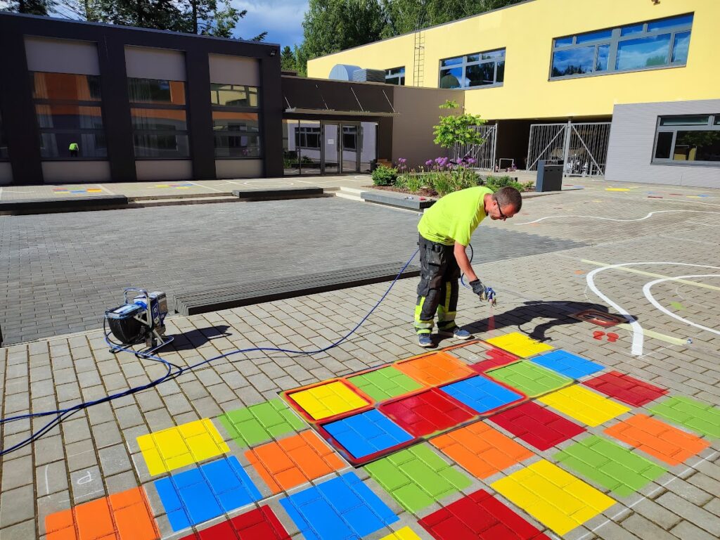Joonime nii spordi- ja mänguväljakuid ning liikluslinnakuid, kus oleme vajadusel kaasatud ka ideede ja projektide planeerimisse. Kasutame alati vastavale objektile kõige sobivamat märgistamisviisi – välitingimustes vastupidavat teemärgistusvärvi ja sisetingimustes 2-komponentseid epoksiid- või polüuretaanvärve, kleebiseid ja teipe. Vastavalt soovidele värvime ka väljakute kontuure või kogu väljakualasid, nt tennise või korvpalliväljakutele.